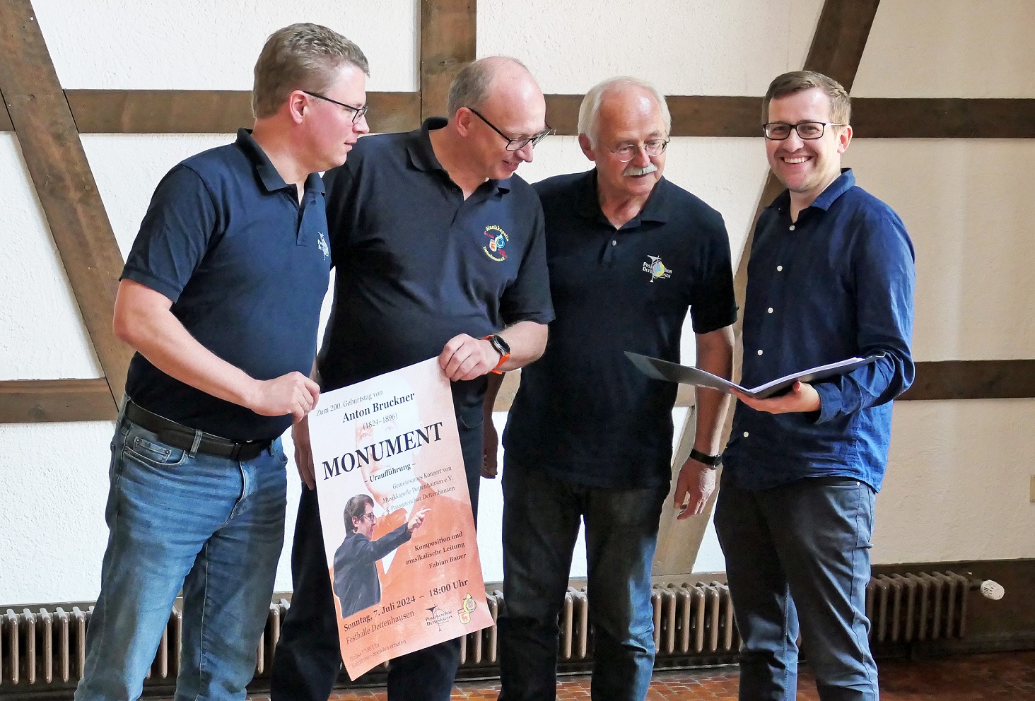 Anlässlich des 200. Geburtsjubiläums von Anton Bruckner präsentierte die Musikkapelle und der Posaunenchor Dettenhausen am 7. Juli ein außergewöhnliches Gemeinschaftsprojekt. Unter der Leitung von Fabian Bauer wurde das Werk „Monument“ uraufgeführt – eine rund halbstündige Hommage im Geiste des österreichischen Romantikers.